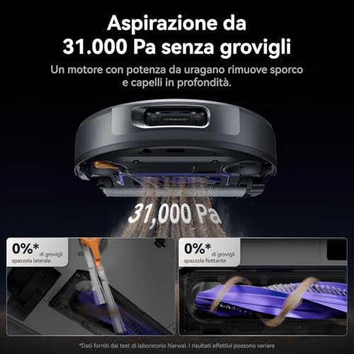 Il sistema NarMind Pro 2.0 integra doppie fotocamere HD e algoritmi avanzati per una navigazione precisa. In ambienti complessi, il robot è in grado di evitare ostacoli come cavi o piccoli oggetti, riducendo il rischio di blocchi. La mappatura multi-piano e la gestione delle zone vietate migliorano l’esperienza d’uso nelle abitazioni su più livelli. Un limite può emergere in condizioni di scarsa illuminazione, dove le prestazioni delle fotocamere possono diminuire leggermente rispetto ai sistemi puramente LiDAR.