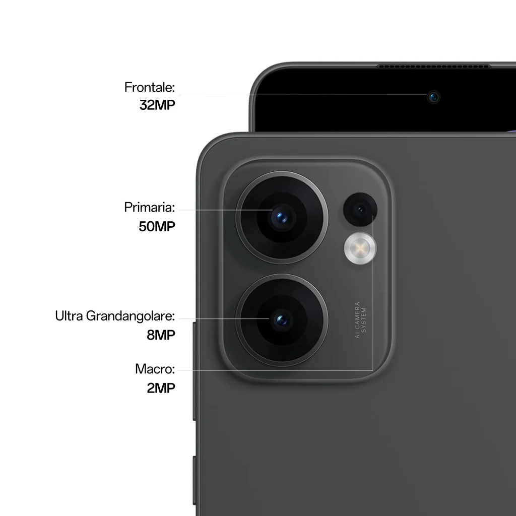 L’OPPO Reno13 FS è dotato di un comparto fotografico avanzato, pensato per chi ama scattare foto di qualità in qualsiasi situazione. La fotocamera posteriore è composta da: