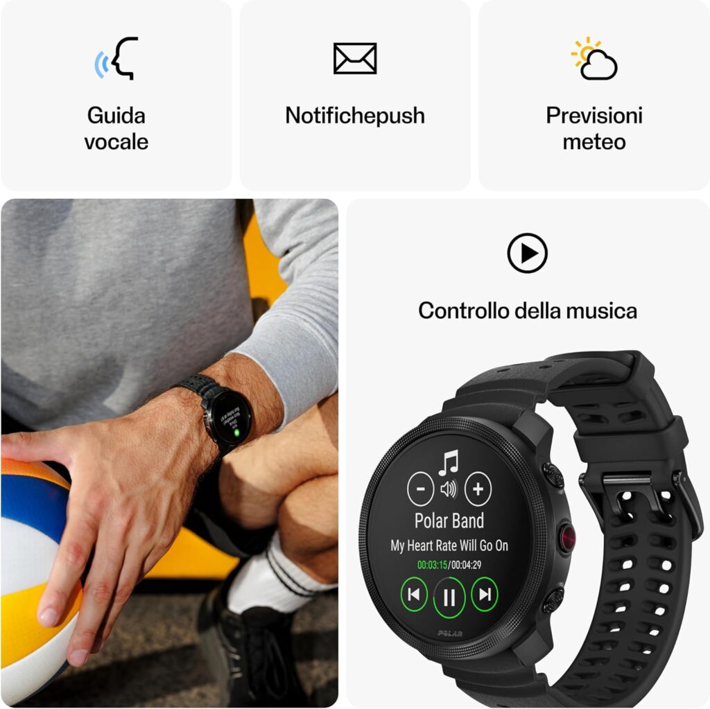 Queste funzioni ti aiutano a ottimizzare ogni aspetto della tua routine sportiva, dalla scelta dell’intensità alla gestione del riposo, fino alla prevenzione degli infortuni. Il Polar Vantage M3 si adatta al tuo stile di vita attivo, supportandoti in ogni fase del percorso, dalla preparazione al recupero.