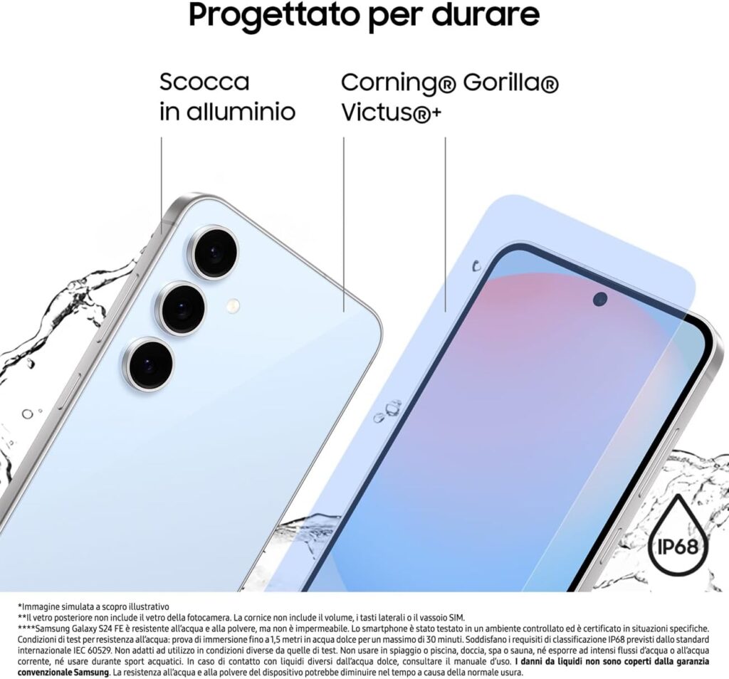 Samsung Galaxy S24 FE Blu: 128 GB e 8GB RAM Display Dynamic AMOLED 2X 6.7 Pollici, Dual SIM, Fotocamera 50MP
