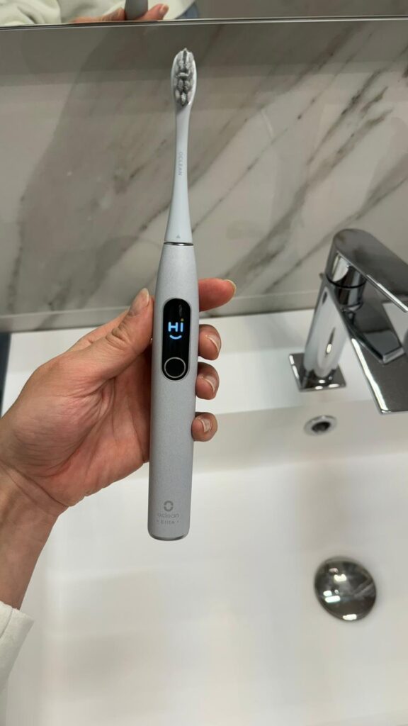 Utilizzare l’Oclean X Pro Elite è un’esperienza che combina comodità, tecnologia e prestazioni eccellenti. La presa ergonomica e il rivestimento soft-touch offrono una sensazione piacevole durante l’uso, rendendo ogni sessione di spazzolamento pratica e confortevole.
