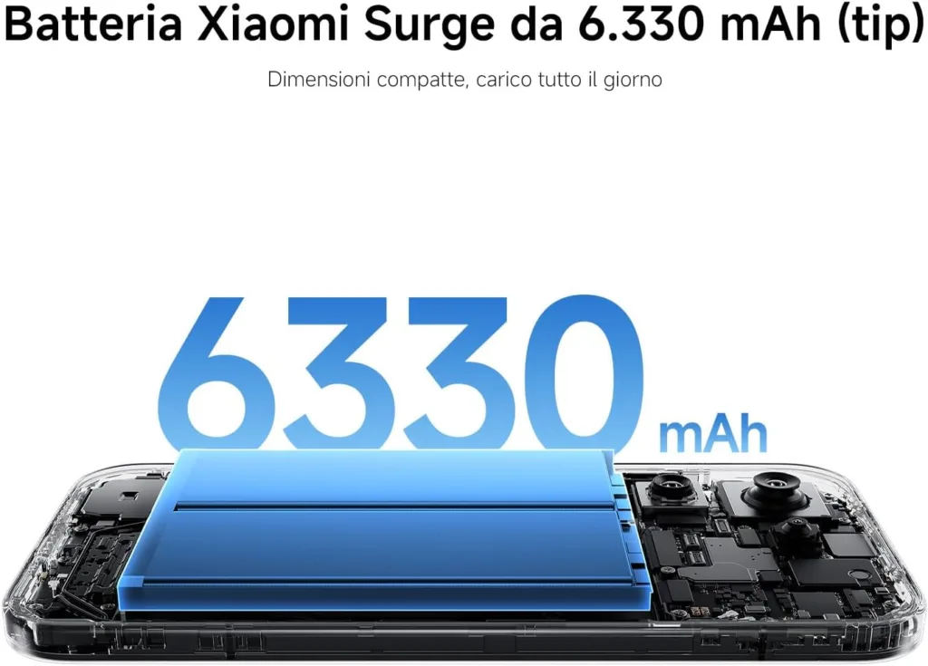 La cosa interessante è che tutto questo arriva su un dispositivo da 6,3″. Di solito, batterie così grandi le trovi su telefoni più ingombranti. Qui invece Xiaomi è riuscita a mantenere un formato relativamente compatto, e questo è uno dei veri punti di forza.